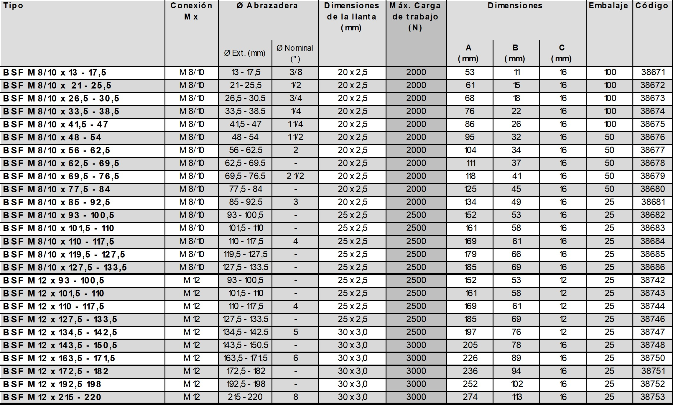 BSF Abrazadera Reforzada Premium Sin aislamiento