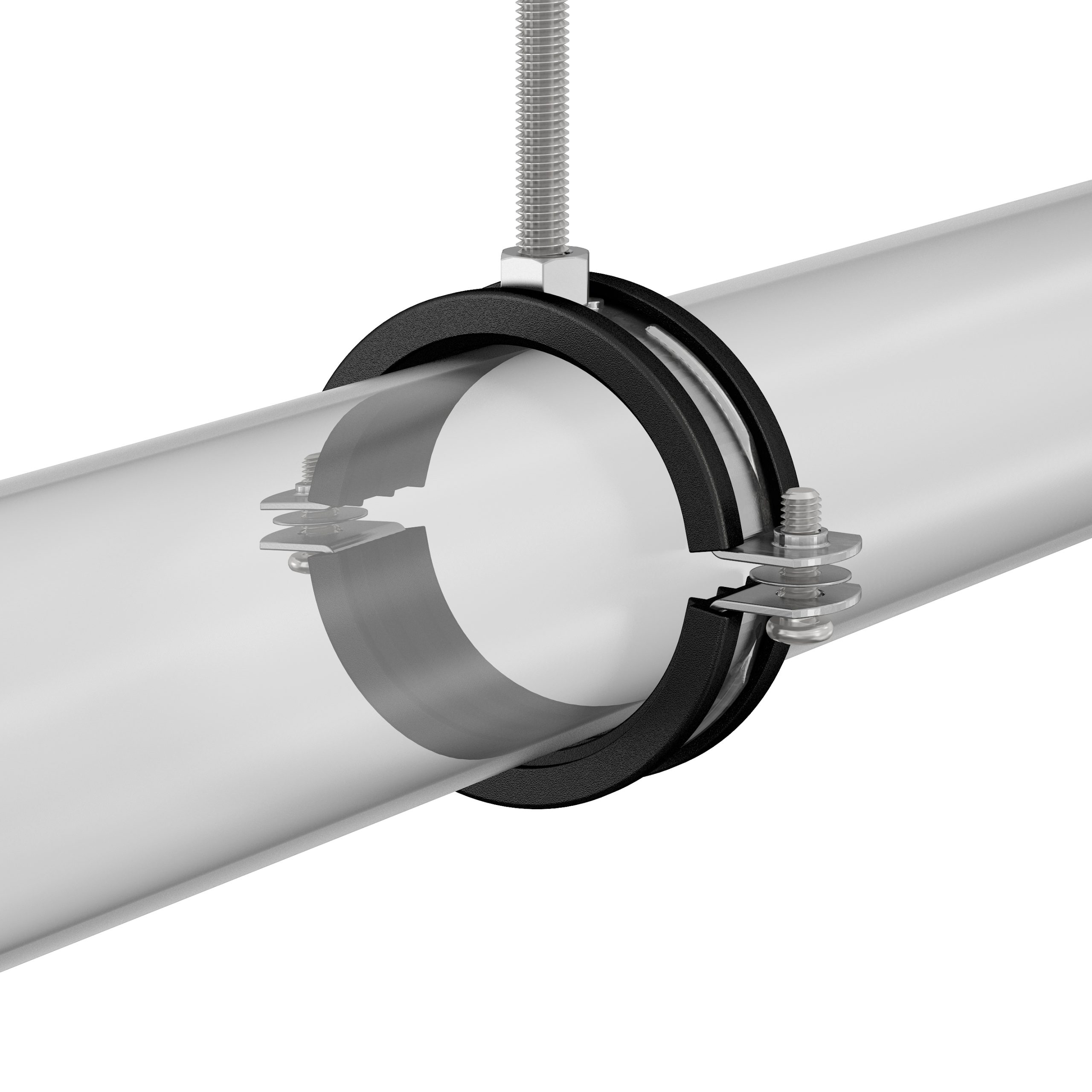 Abrazaderas universales revestidas de goma para montar tuberías en la pared o el techo.