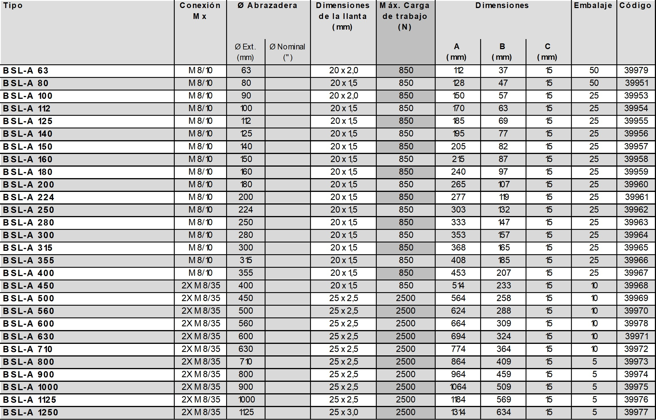 BSL-A Abrazadera para CONDUCTOS con aislamiento