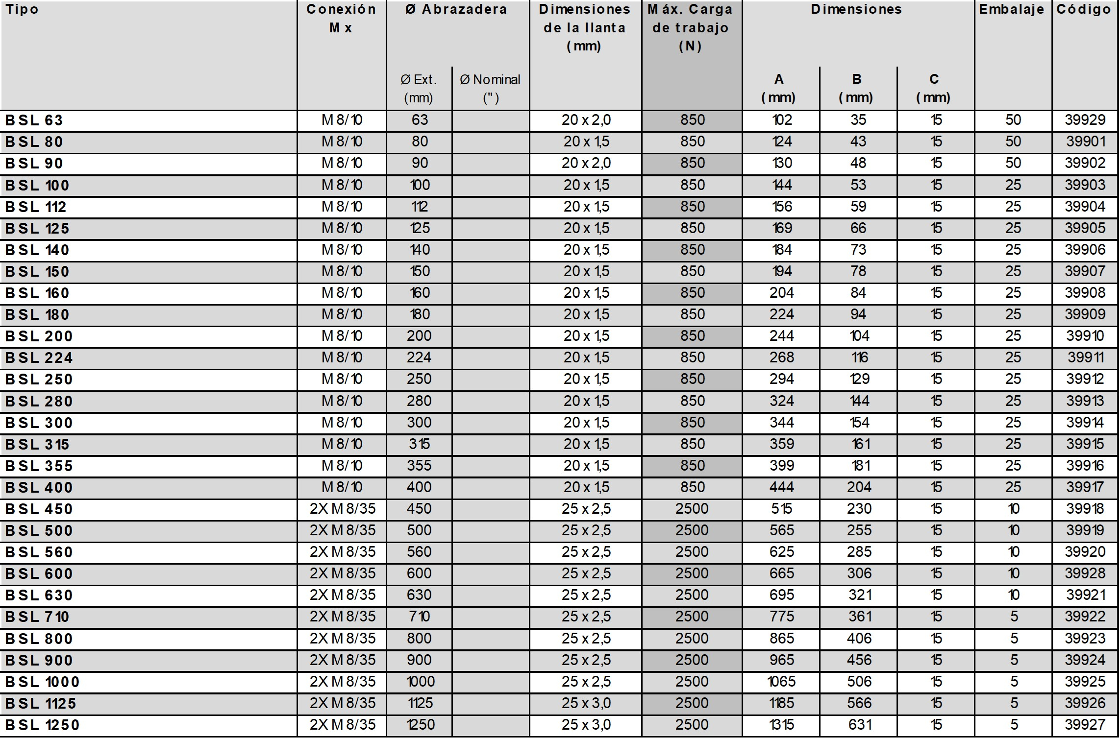 BSL Abrazadera para CONDUCTOS sin aislamiento