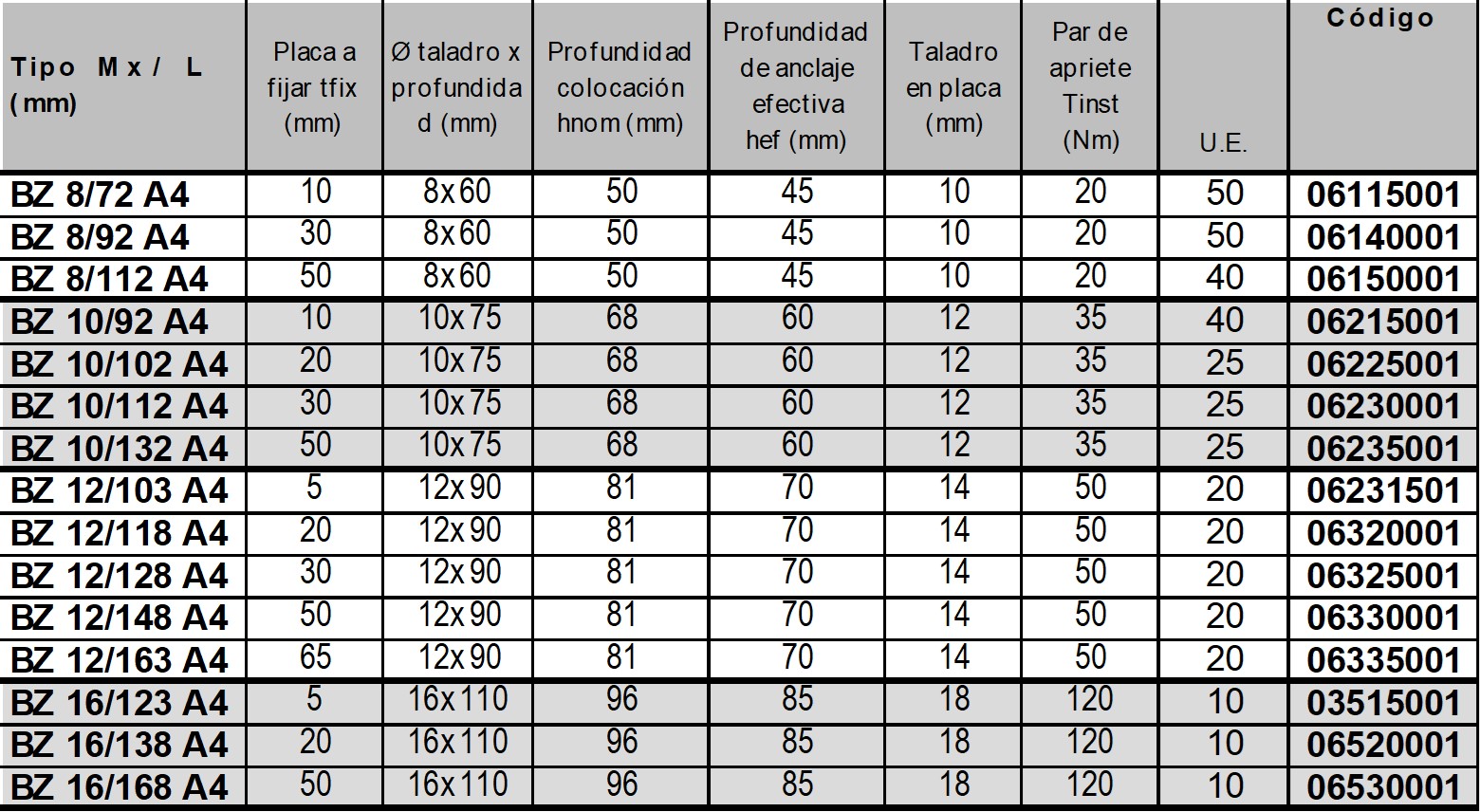 ► Anclaje de acero Inoxidable A4 diseñado para la fijación estructural sobre soportes sólidos.