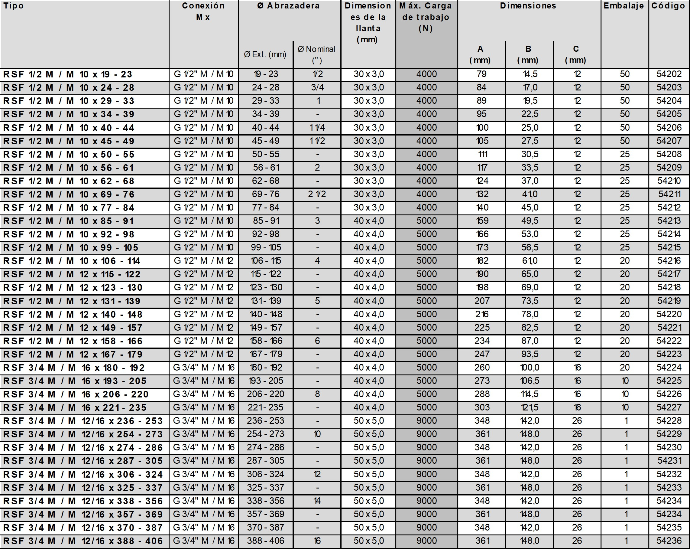 • RSF G ½ M / M 10, G ½ M / M 12 y G ¾ M / M 16: