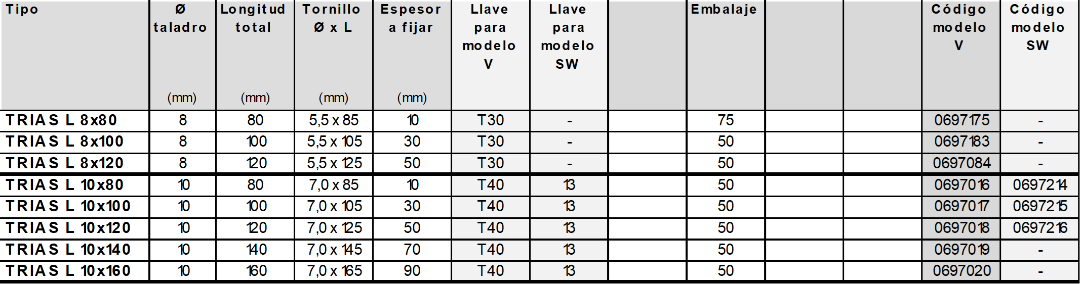 TRIAS L A4 Taco Universal largo equipado con tornillo Inox. A4